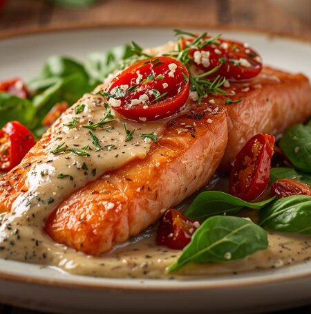 Creamy Tuscan Salmon with Spinach and Sun-Dried Tomatoes