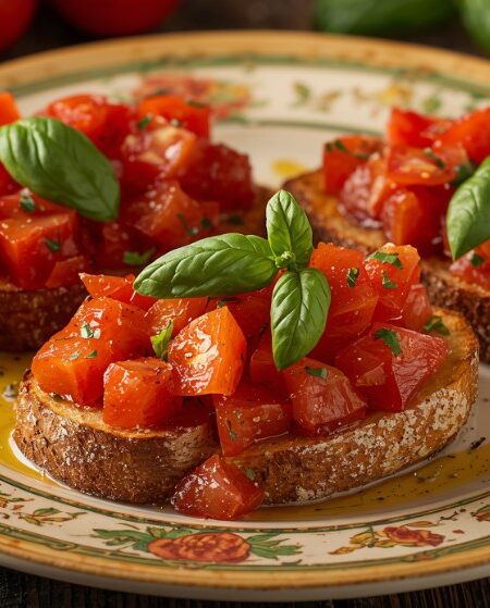 Italian Bruschetta with Tomato, Basil, and Garlic