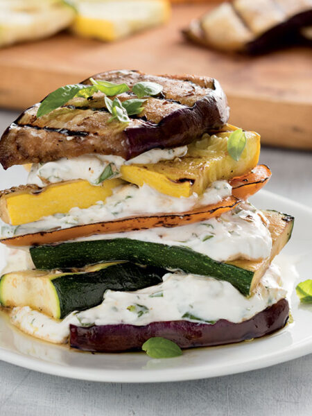 Grilled Vegetable Napoleon with Goat Cheese and Balsamic Glaze