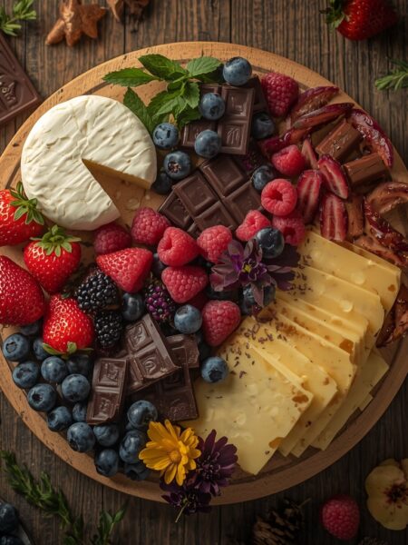 Charcuterie Board with Berries, Brie, and Dark Chocolate