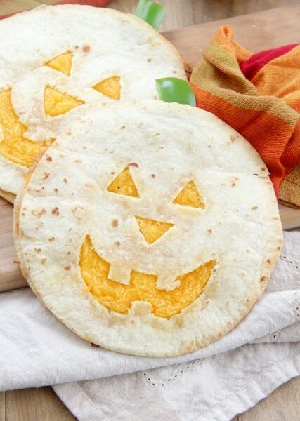 Jack-O’-Lantern Quesadillas with Cheese Filling
