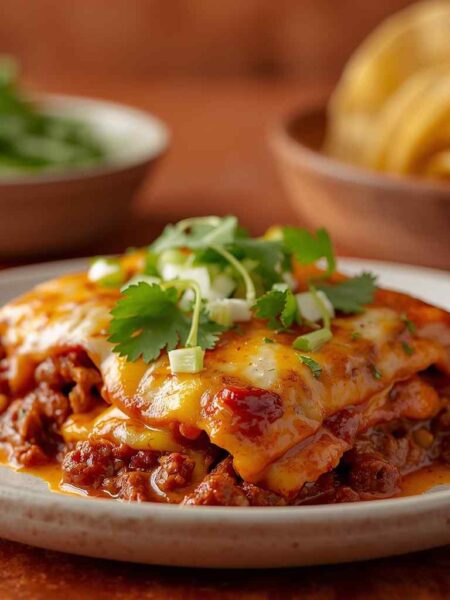 Beef Enchilada Casserole with Corn Tortillas