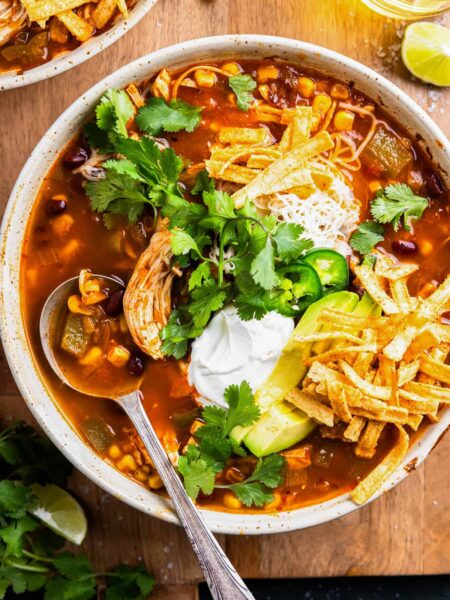 Crockpot Chicken Tortilla Soup with Crispy Strips