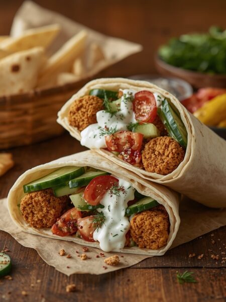 Falafel Wraps with Tzatziki and Cucumber Salad