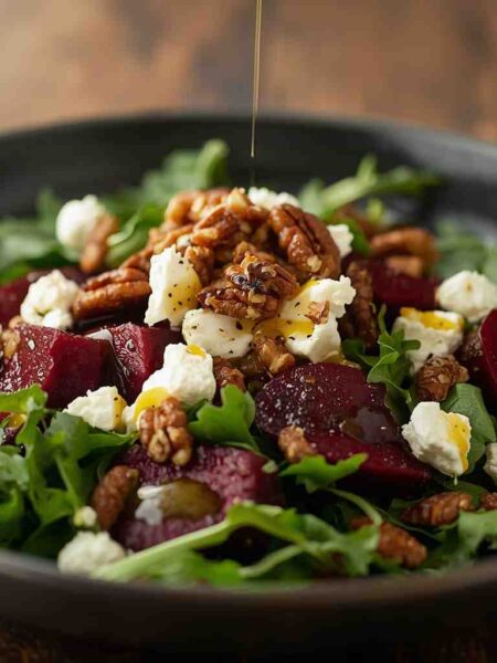 Beet and Goat Cheese Salad with Candied Pecans