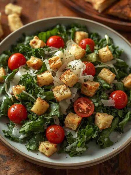 Kale Caesar Salad with Garlic Croutons