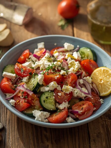 Greek Salad with Feta and Lemon-Oregano Vinaigrette