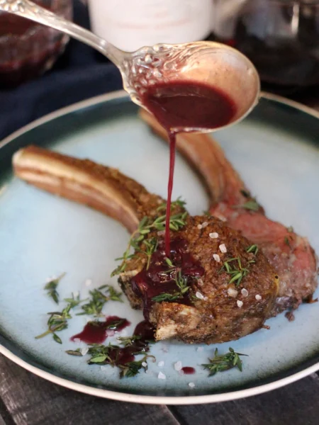 Rosemary and Thyme Roasted Rack of Lamb with Red Wine Sauce