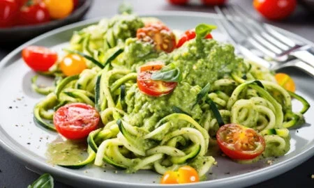 Zucchini Noodles with Pesto and Cherry Tomatoes