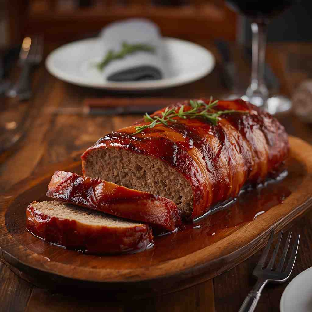5. Step 5: Prepare the Smoky Glaze : In a small bowl, whisk together: Ketchup, brown sugar, BBQ sauce, vinegar, and liquid smoke (if using). Brush half of the glaze evenly over the bacon-wrapped loaf.