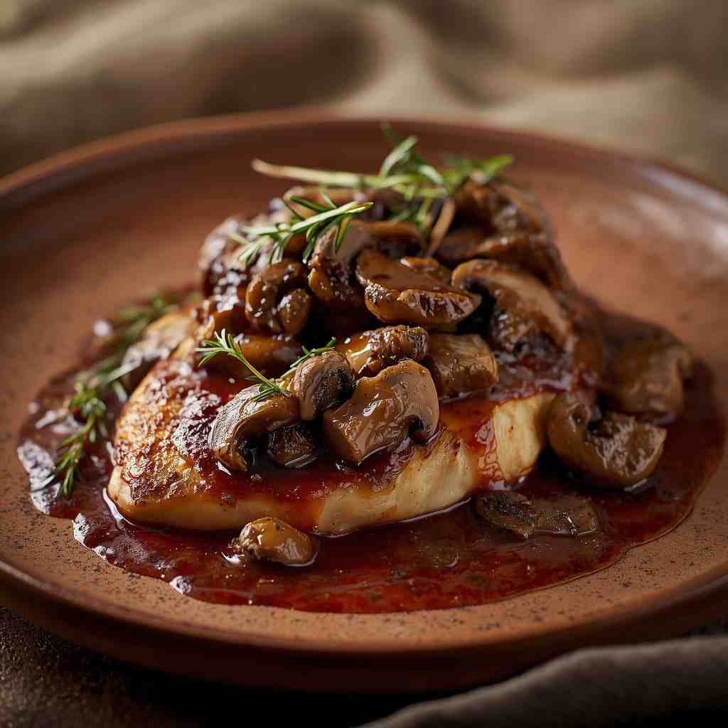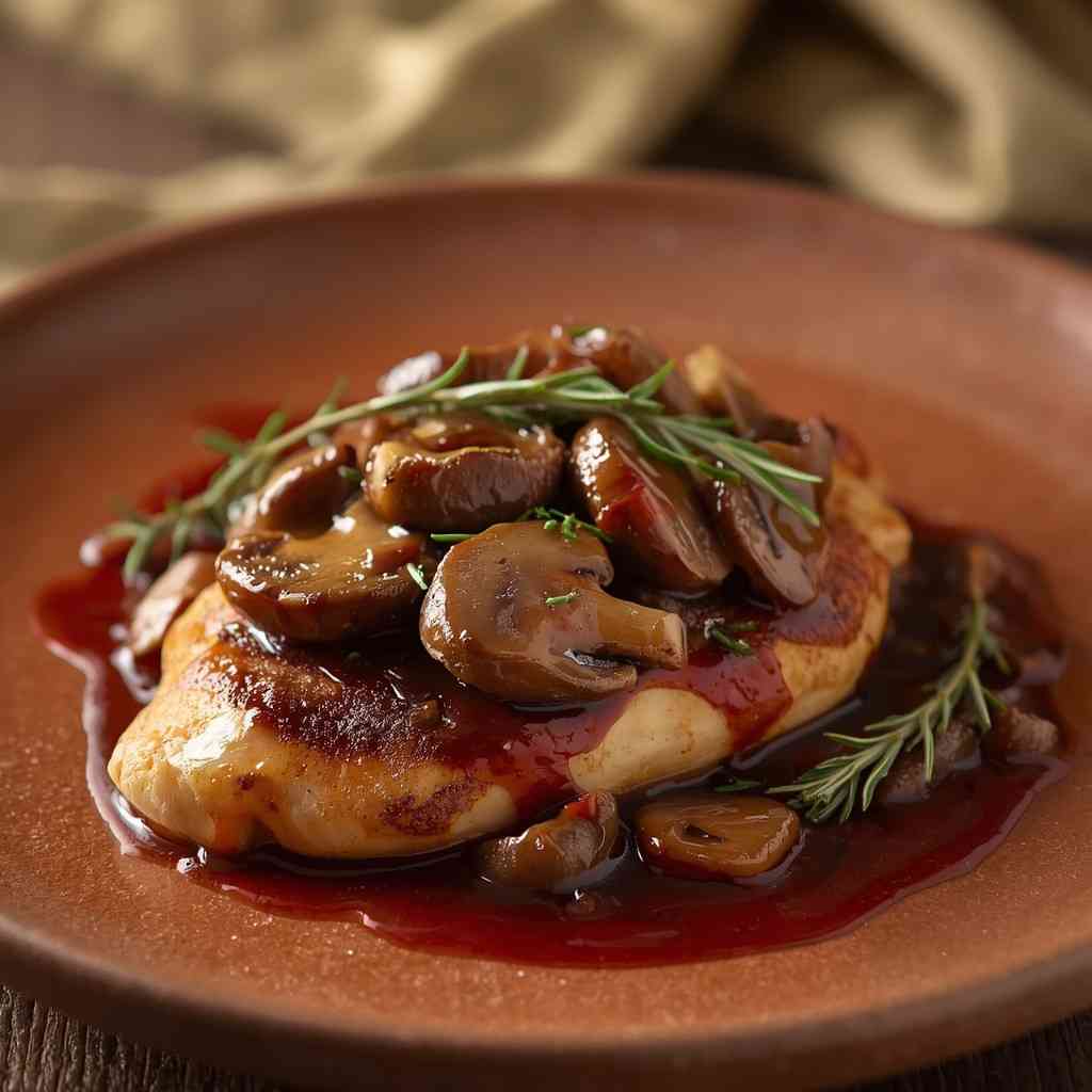 6. Step 6: Combine and Finish : Return the cooked chicken to the skillet. Spoon the sauce and mushrooms over the chicken. Simmer gently for 2–3 minutes until everything is heated through and the flavors meld together. Garnish with fresh parsley before serving.