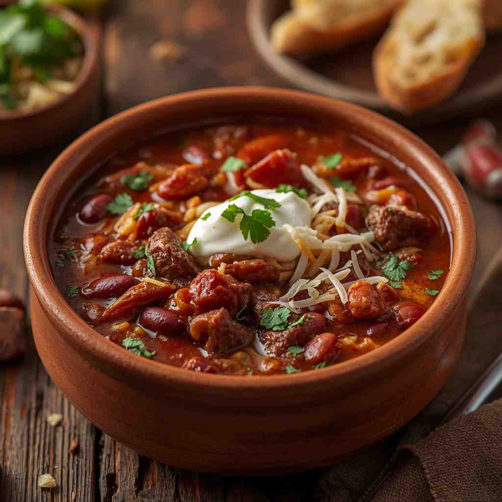 The origins of chili go back to the American Southwest, where it was crafted as a simple, filling, and flavorful stew. Over time, it has evolved into countless regional variations, but this classic version—with beans and tomatoes—remains a beloved staple in homes everywhere. Each spoonful delivers deep, savory goodness that makes it a timeless favorite for weeknights, game days, or chilly evenings.