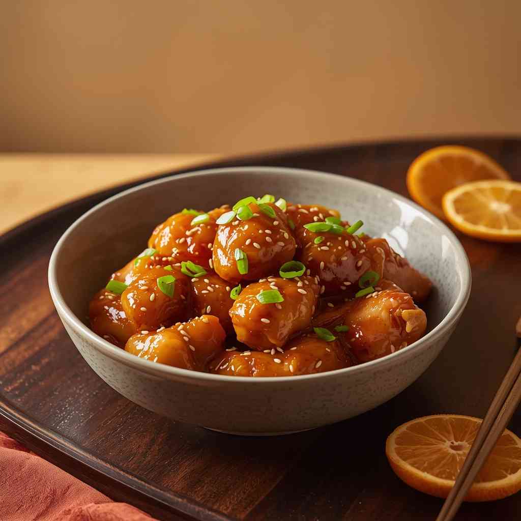 Unlike fried versions, this one is lightened up — no breading, no deep frying — but still has that irresistible sticky-sweet coating. It’s rich, bright, and perfectly balanced between tangy and sweet.