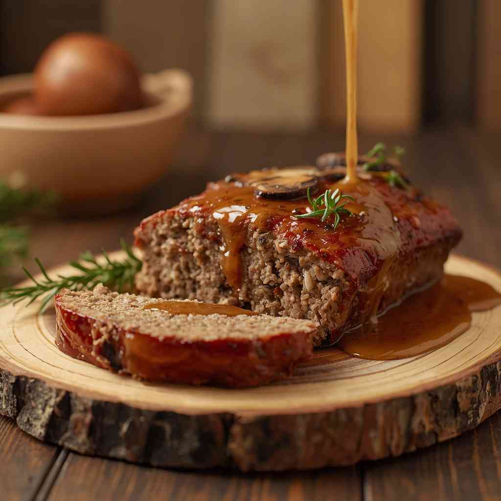 I love this recipe because it transforms an ordinary meatloaf into something deeply flavorful and elegant. The combination of mushrooms and onions adds layers of richness and moisture, keeping the meatloaf tender without being greasy. The homemade gravy is silky, flavorful, and ties everything together beautifully.