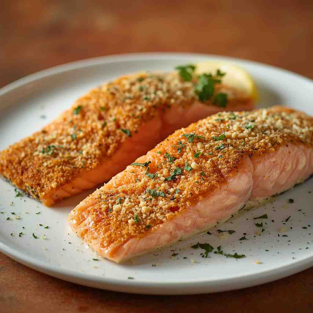 Add more fresh herbs like dill, thyme, or basil to the crust for an aromatic touch. - Spicy Parmesan Salmon: