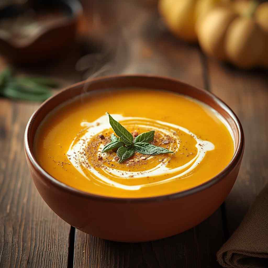 Step 5: Serve : Ladle the soup into bowls. Garnish with a drizzle of cream, a sprinkle of pepper, or crisp fried sage leaves. Serve warm with crusty bread or a side salad.