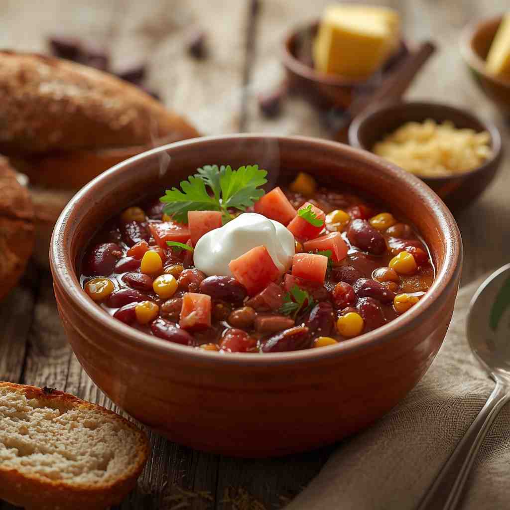 This Vegetarian Three-Bean Chili with Corn is a wholesome, hearty, and flavorful meal that proves vegetarian cooking can be just as satisfying as any meat-based dish. With a medley of beans, sweet corn, and aromatic spices, it’s a versatile recipe perfect for weeknight dinners, meal prep, or cozy gatherings. Easy to make, nutritious, and deeply comforting, this chili is a must-try for anyone seeking a delicious plant-based meal that warms the heart and satisfies the appetite.
